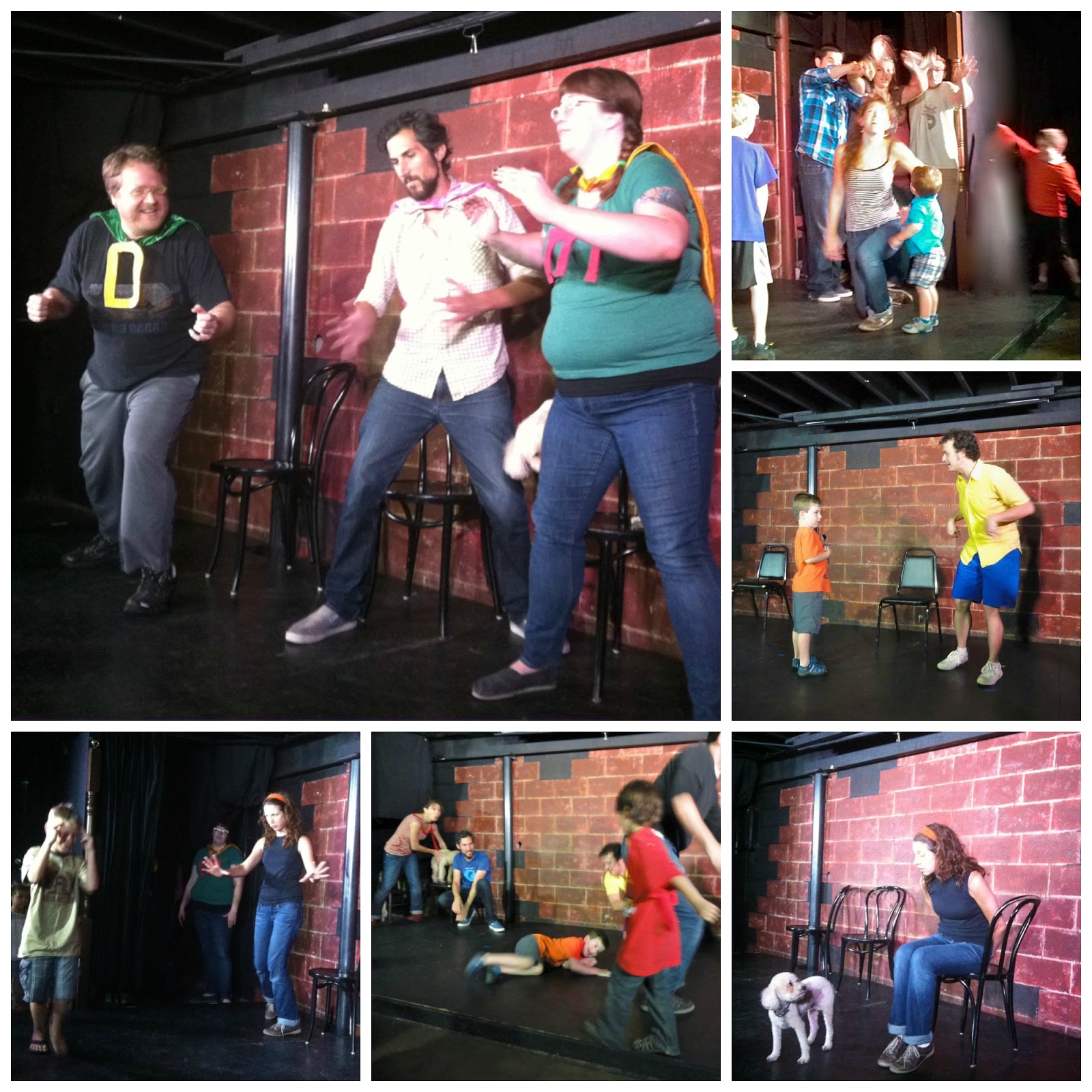 The first time my family ventured to ColdTowne Theater for the Saturday morning show, it was at the urging of our friend, Chris, who happens to be one of the adult improvisors. My then five-year-old son was initially overwhelmed by the whole scene: unfamiliar locale, dark room, new people. Not even Chris’ familiar face on the stage could prompt him to volunteer his ideas for the show. It became clear that several audience members were regulars, waggling their hands eagerly and being called on by name.